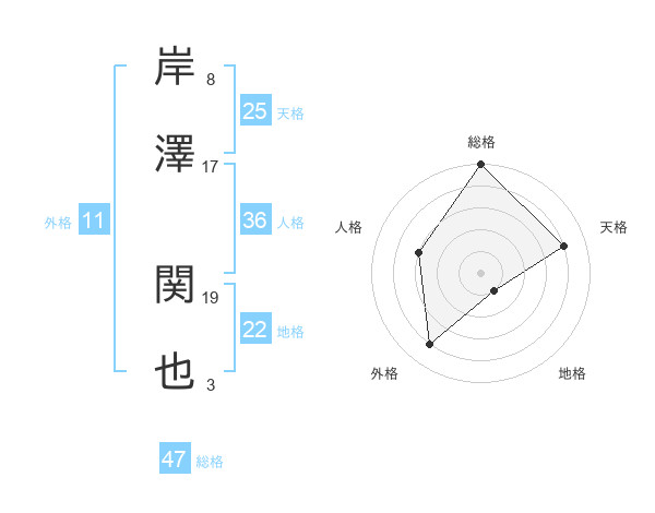 岸澤 関也さんを姓名の画数から五運を鑑定