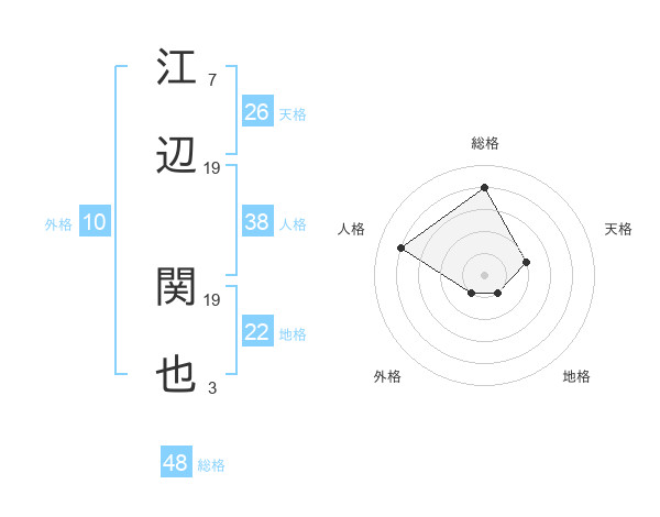 江辺 関也さんの総格は48画の4点!