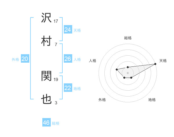 沢村 関也さんの天格は24画の5点