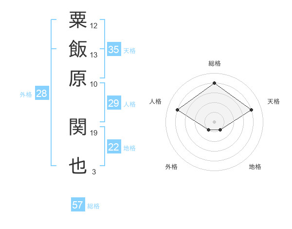 粟飯原 関也さんを姓名の画数から五運を鑑定