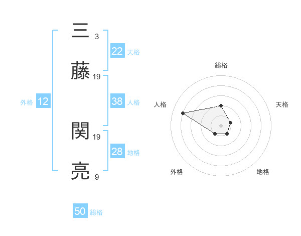 三藤 関亮さんの総格は50画の2点!
