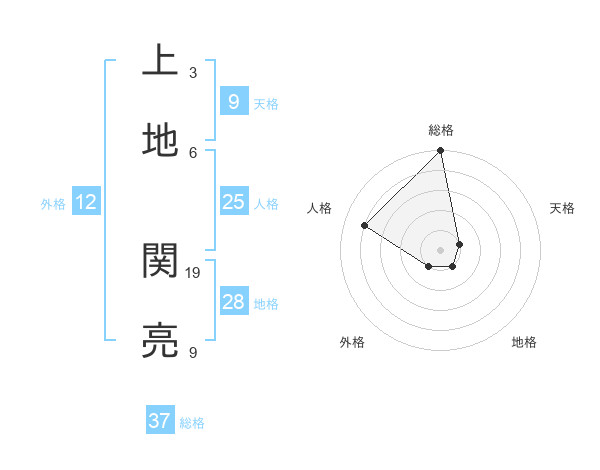 上地 関亮さんの総格は37画の5点!