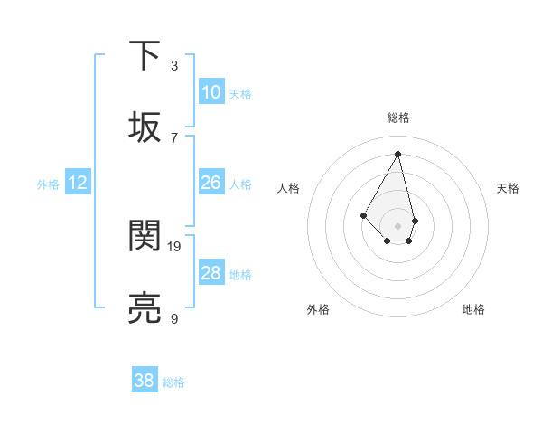 下坂 関亮さんの総格は38画の4点!