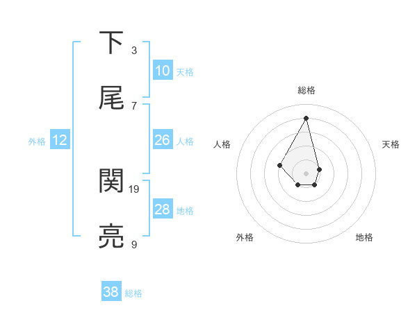 下尾 関亮さんを姓名の画数から五運を鑑定