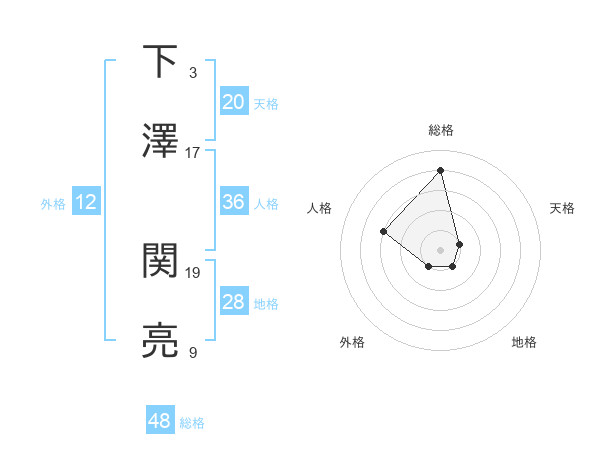 下澤 関亮さんを姓名の画数から五運を鑑定