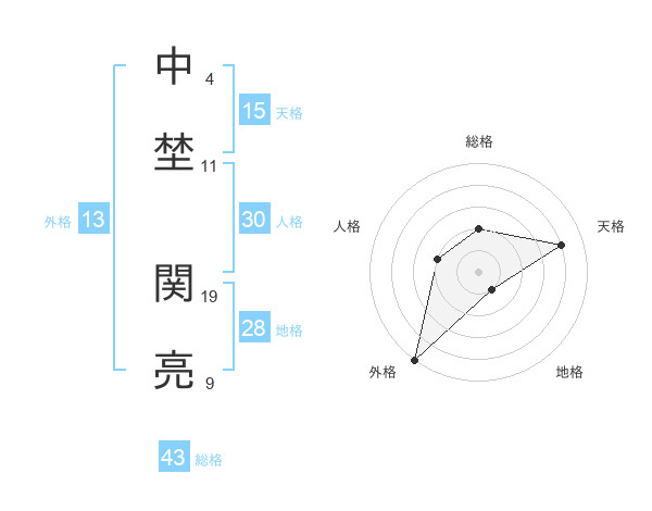 中埜 関亮さんを姓名の画数から五運を鑑定