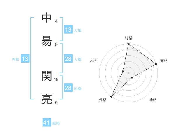 中昜 関亮さんの外格は13画の5点!