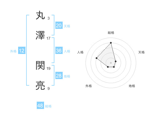 丸澤 関亮さんの総格は48画の4点!