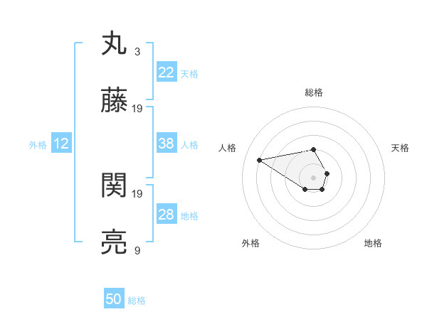 丸藤 関亮さんを姓名の画数から五運を鑑定