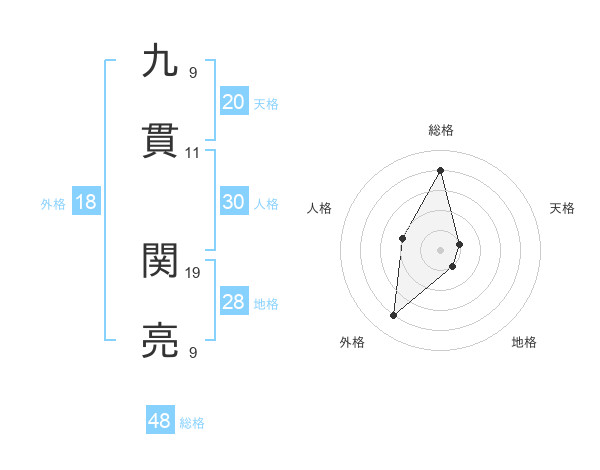 九貫 関亮さんを姓名の画数から五運を鑑定