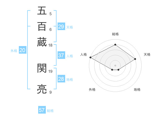 五百蔵 関亮さんを姓名の画数から五運を鑑定