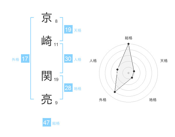 京崎 関亮さんの総格は47画の5点!