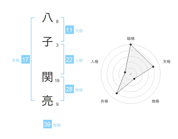 八子 関亮さんの総格は39画の5点!