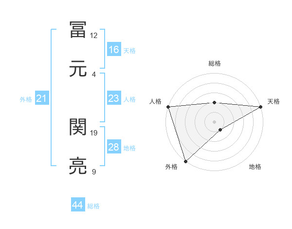 冨元 関亮さんの天格は16画の5点!