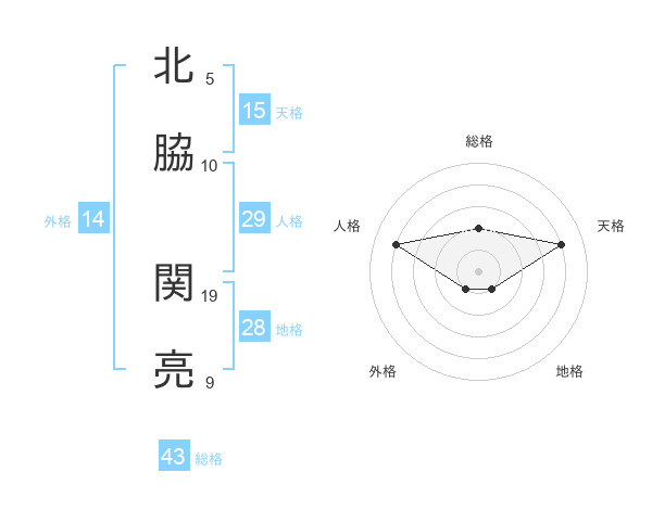 北脇 関亮さんの総格は43画の2点!