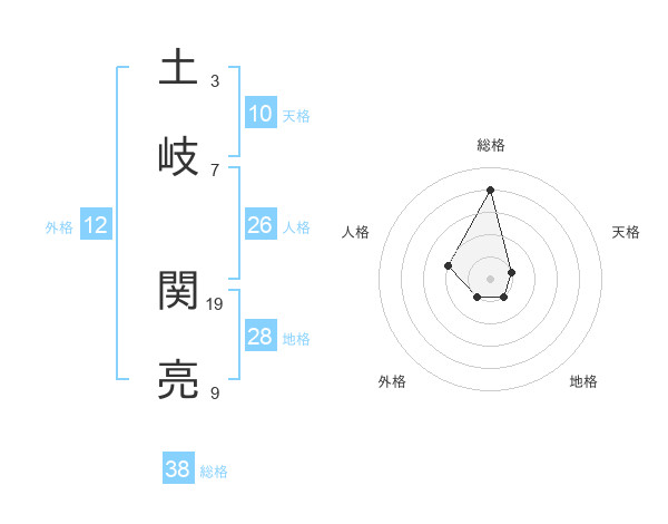 土岐 関亮さんを姓名の画数から五運を鑑定