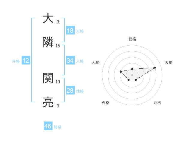 大隣 関亮さんを姓名の画数から五運を鑑定
