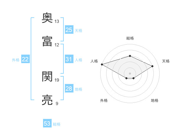 奥富 関亮さんの総格は53画の3点!