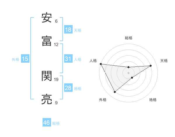 安富 関亮さんの総格は46画の1点!