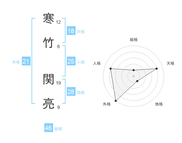 寒竹 関亮さんを姓名の画数から五運を鑑定