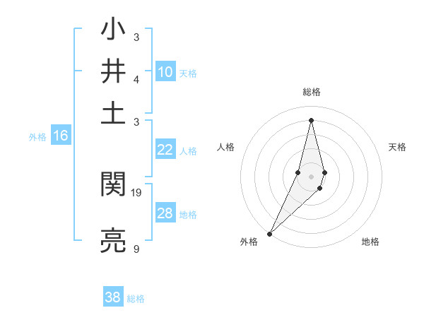小井土 関亮さんを姓名の画数から五運を鑑定