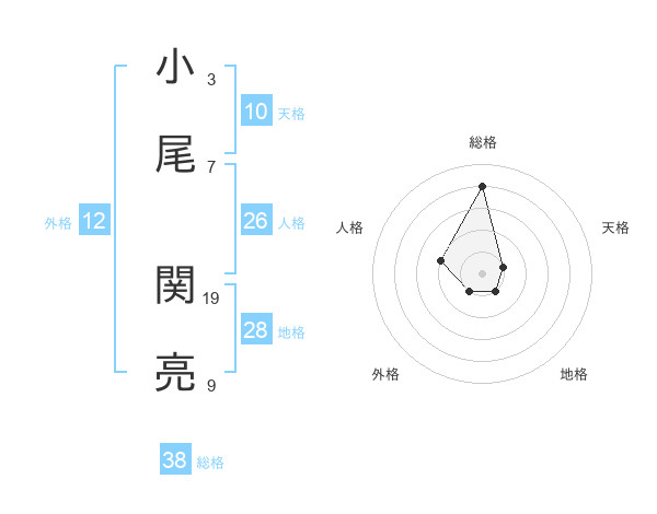 小尾 関亮さんの総格は38画の4点!