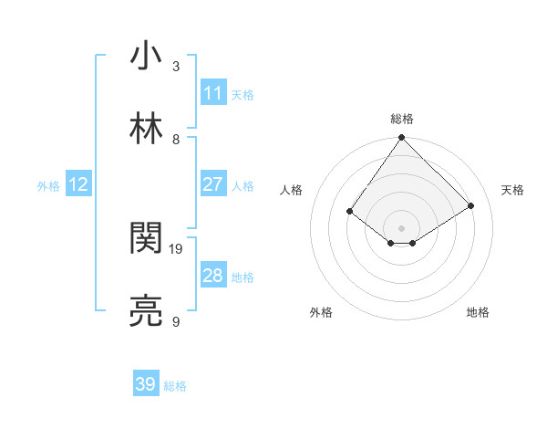 小林 関亮さんの総格は39画の5点