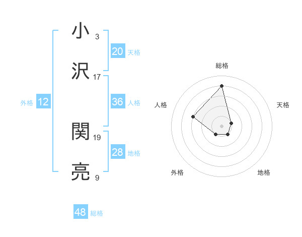 小沢 関亮さんの総格は48画の4点!