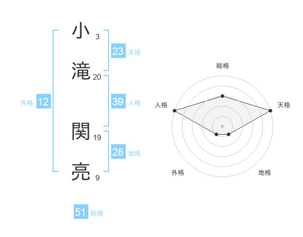 小滝 関亮さんを姓名の画数から五運を鑑定