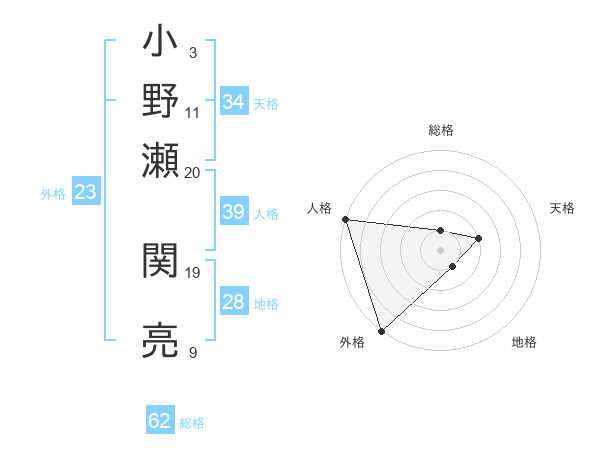 小野瀬 関亮さんを姓名の画数から五運を鑑定