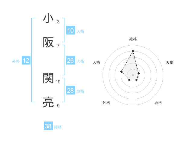 小阪 関亮さんの総格は38画の4点!