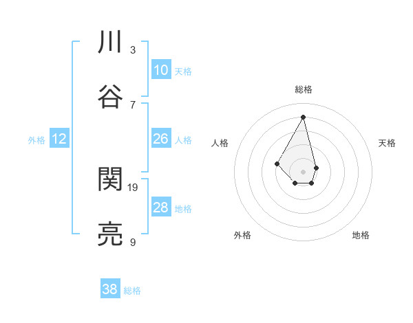川谷 関亮さんを姓名の画数から五運を鑑定