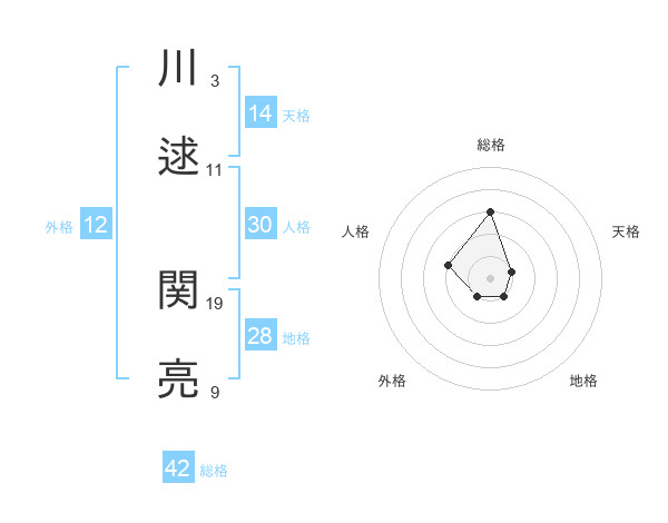 川逑 関亮さんの総格は42画の3点!