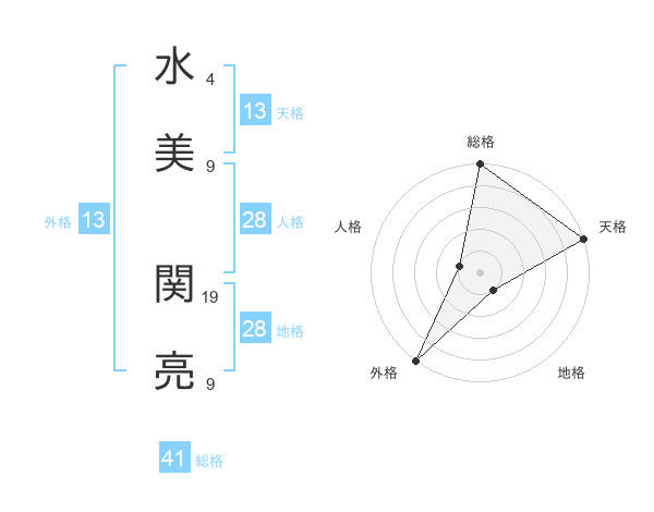 水美 関亮さんの外格は13画の5点!