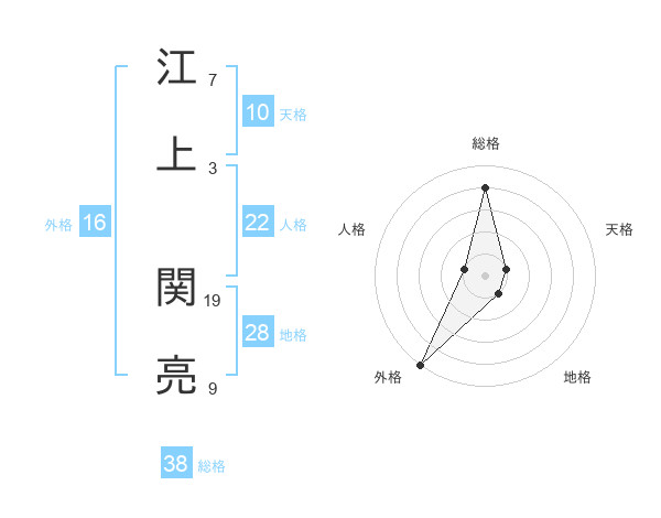 江上 関亮さんの総格は38画の4点!