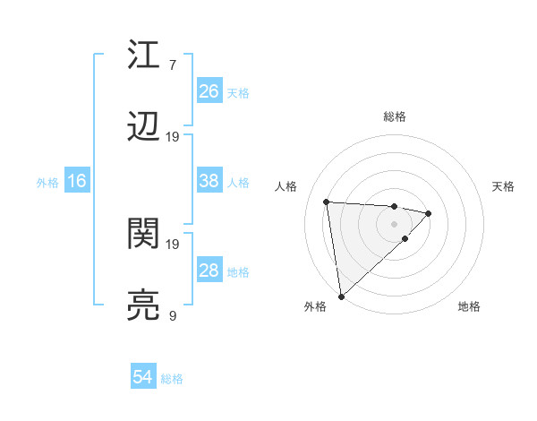 江辺 関亮さんを姓名の画数から五運を鑑定