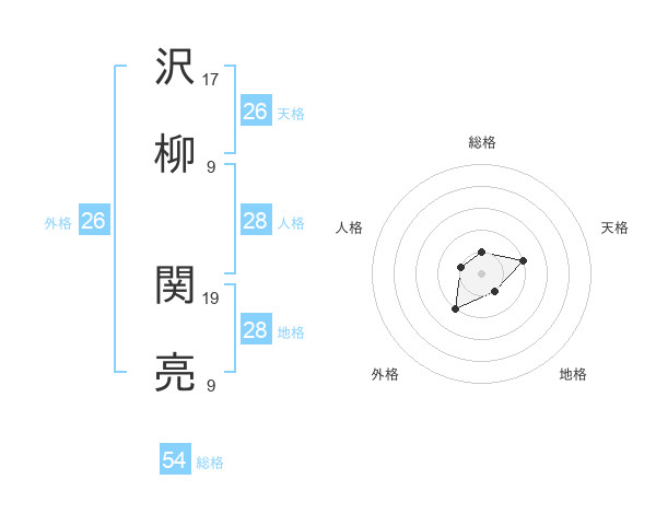 沢柳 関亮さんの外格は26画の2点!
