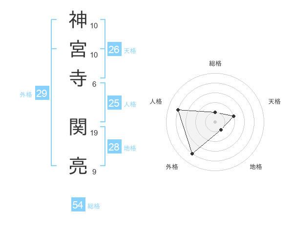 神宮寺 関亮さんを姓名の画数から五運を鑑定