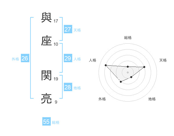 與座 関亮さんの総格は55画の1点!