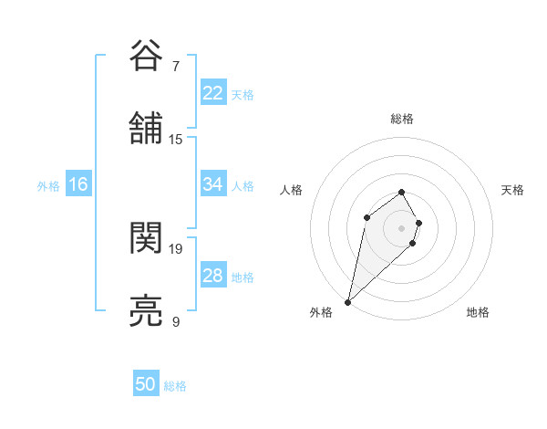谷舗 関亮さんを姓名の画数から五運を鑑定