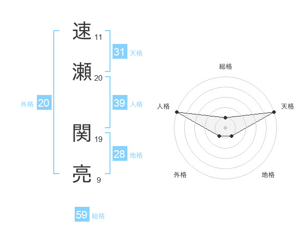 速瀬 関亮さんの総格は59画の1点!