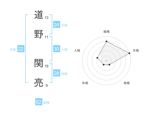 道野 関亮さんの総格は52画の4点!