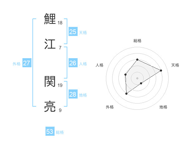 鯉江 関亮さんの総格は53画の3点!