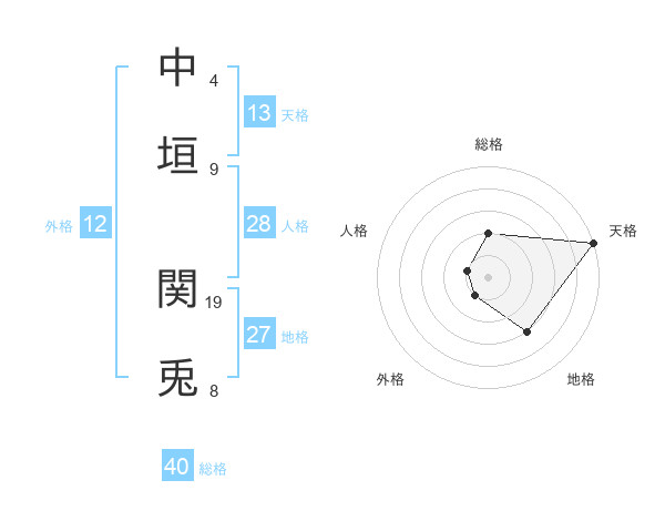 中垣 関兎さんを姓名の画数から五運を鑑定