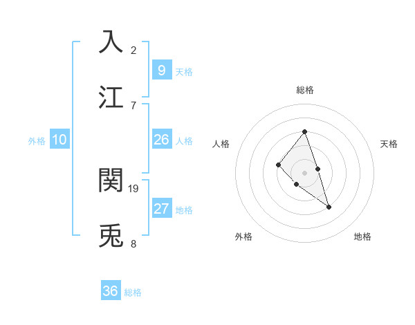 入江 関兎さんの総格は36画の3点!