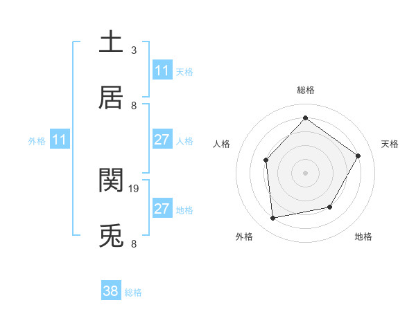 土居 関兎さんの総格は38画の4点!