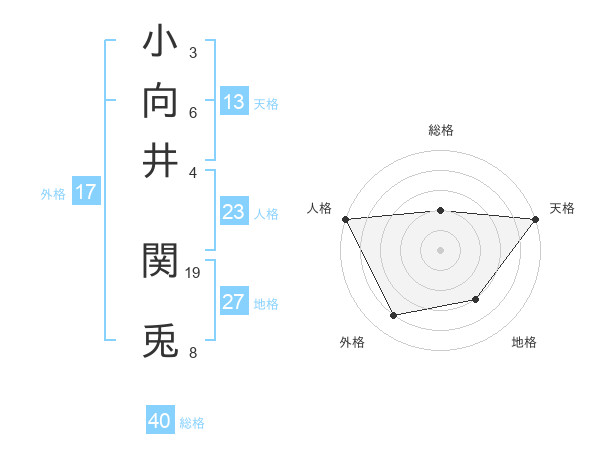 小向井 関兎さんを姓名の画数から五運を鑑定