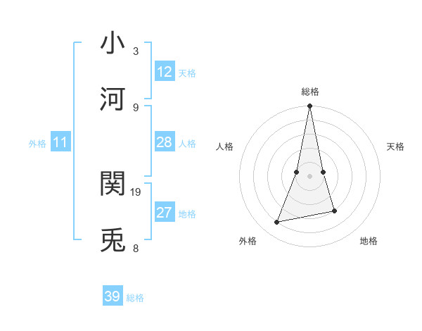 小河 関兎さんの総格は39画の5点!