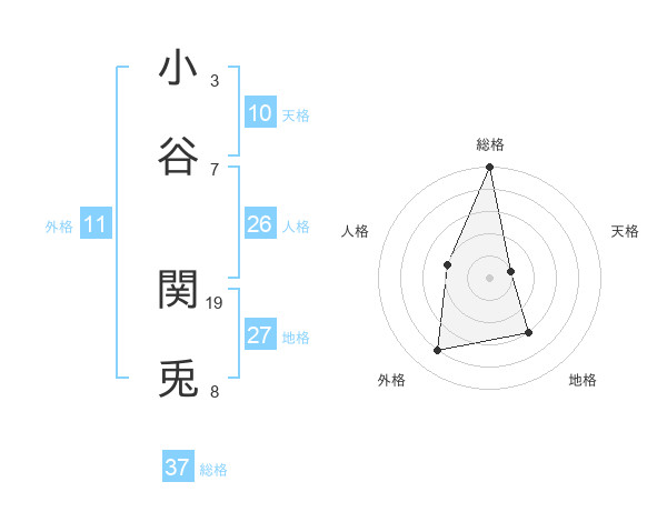 小谷 関兎さんを姓名の画数から五運を鑑定