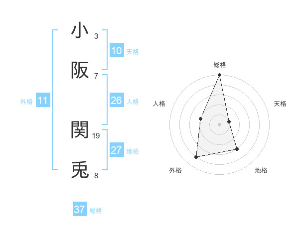 小阪 関兎さんの地格は27画の3点!